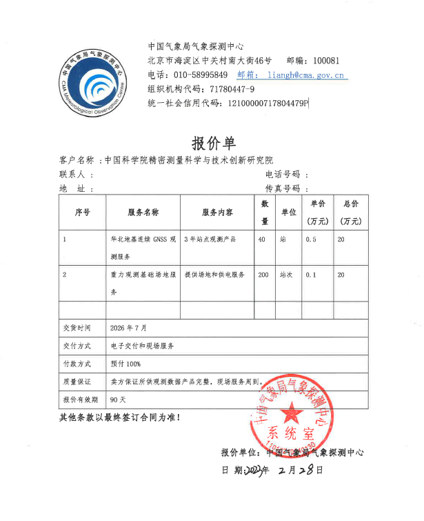 采购项目:采购华北陆续在GNSS观测产品与重力观测场地服务
